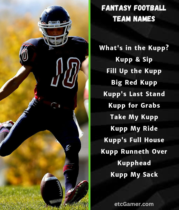 What makes Cooper Kupp so intriguing? Is it his ability to read defenses? Or is it his knack for making those tough catches look easy? 🤔 Whatever it is, he’s a player who brings excitement to the game. Don’t just take my word for it. Share your favorite Cooper Kupp Fantasy football team names in the comment section below! Let’s see what funny or clever ones are out there. Your pick could be the next big hit on Reddit!